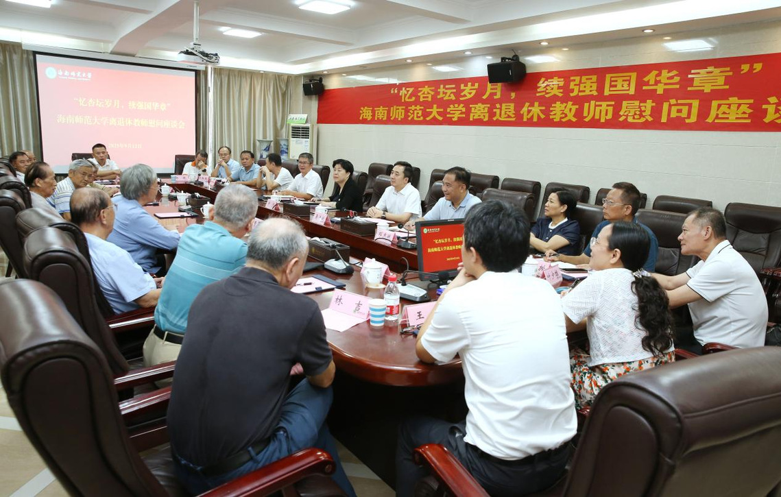 为传递学校对教师的关怀,弘扬尊师重教优良传统,9月12日下午,我校召开“忆杏坛岁月 续强国华章”离退休教师慰问座谈会。校党委常委、副校长杨兹举主持会议,校党委书记许玫,校党委副书记、校长聂清斌出席会议。 会上,与会人员共同观看学校75周年校庆宣传片,全面了解学校近年来的发展成果。离退休教师代表分享自身育人经验,并围绕师资建设、教学质量、文化传承、校园环境等方面建言献策,表达了对教育事业与学校发展的深切关怀。 聂清斌对老教师们为学校发展作出的贡献给予肯定,他引用“莫道桑榆晚,为霞尚满天”勉励大家继续关心和支持学校建设,并表示学校将持续推进人才强校战略,重点抓好加强国际教育、优化教风学风、改善教学条件等工作。 许玫指出,老教师们是学校历史的亲历者与创造者,从学校初创的艰难时期,到稳步发展阶段,再到新时代的跨越发展,一代代“海师人”始终践行“崇德尚学、求是创新”的校训精神,培育了一批批优秀人才。她强调,学校将继续弘扬“榕树精神”,激发内生发展动力,为教育强国建设与海南自贸港建设贡献力量。 此外,9月11日,许玫带队慰问了老教师、老专家,为他们送去节日祝福与慰问品,并听取了他们对学校发展的建议。 校党政办公室、校组织部、校宣传部、校教师工作部、校离退休干部办公室、校工会等部门负责人参加会议。