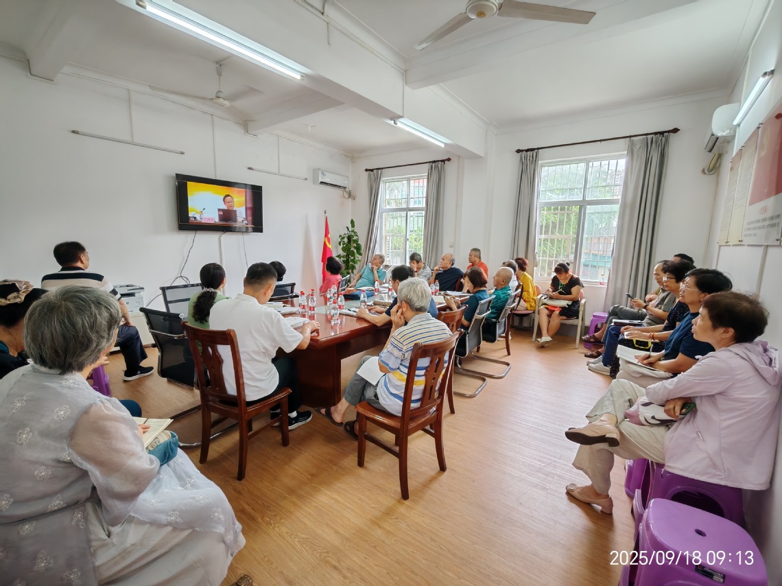 为铭记历史守初心,薪火相传向未来,9月18日上午9点,海南省老年大学、海南开放大学合作办学开学典礼暨以“弘扬伟大抗战精神 为自贸港建设贡献银发力量”为主题的老年教育“开学第一课”在海南开放大学海甸校区3楼报告厅隆重开启。 本次活动为直播形式,会前,我办在离退休教职工微信群发布此次专题视频会议的相关通知,号召大家自行收看。同时,我办还组织30位离退休教职工代表在会议室集中收看。此次学习打破了空间限制,让老同志们足不出户便能走进“红色课堂”。“开学第一课”主讲嘉宾为海南省老干部红椰宣讲团秘书长陈业贵。通过回顾峥嵘岁月中的抗战历史,感悟伟大抗战精神,老同志们深刻领会到新时代下“银发力量”在自贸港建设中的责任与使命,为新学期的学习与实践注入了强大的精神动力 。 10点,视频会议进入第二阶段。我校5位海南省红椰宣讲团成员继续留在会议室,通过腾讯会议APP,全程收看海南省老干部红椰宣讲团全体成员第一次(扩大)会议直播。此举不仅让宣讲团成员及时掌握了省级宣讲工作的部署与要求,更为我校老干部红椰宣讲团后续开展宣讲活动、传递 “银发之声” 明确了方向与重点 。
